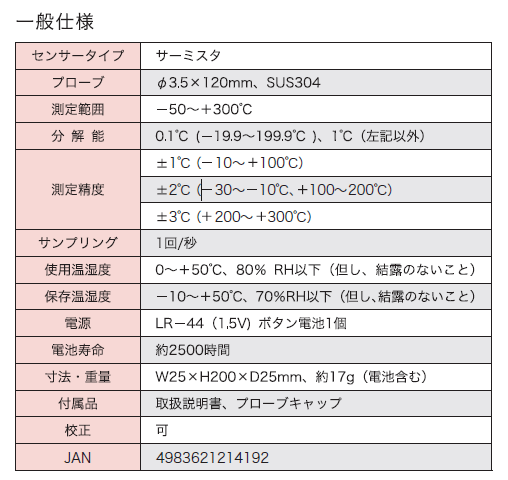 HOME新品 環境系計測器 CUSTOM 防水デジタル温度計 CT-419WP 定価: ¥3,300(税込) 価格: ¥2,970 (税込) 10%OFF 販売期間: メーカー: CUSTOM 型番: CT-419WP 数量: 台 在庫: お取り寄せ 在庫 お取り寄せ 返品についての詳細はこちら ※在庫のない商品・要お問い合わせ商品につきましては上記「お問い合わせ」ボタンよりご相談下さい。 ※商品画像はシリーズ代表例を使用している場合があり、実際の商品と異なることがございます。ご注意ください。 ※お届けまでの目安について ご注文からお届けまでの日数につきましては、ご利用ガイド「発送について」をご確認ください。 ご利用ガイドへ CUSTOM 防水デジタル温度計 CT-419WP 商品仕様 製品名: CT-419WP 型番: CT-419WP メーカー: CUSTOM 関連商品 藤田電機製作所 温度湿度データロガー (センサー内蔵型・防水・NFC通信) watchlogger KT-255F 定価: ¥15,180(税込) ¥13,662(税込) 在庫  在庫あり testo 赤外放射温度計 testo 810 [0560 0811] 定価: ¥25,300(税込) ¥25,300(税込) 在庫  在庫あり ユニティ (UNI-T) サーマルイメージャ UTi260K-J 定価: オープン価格 ¥20,000(税込) 在庫  在庫あり 【在庫限り】CUSTOM Ultimate Siries デジタル温度計 (Kタイプ 2ch) KT-02U 定価: ¥21,780(税込) ¥6,600(税込) 在庫  在庫あり