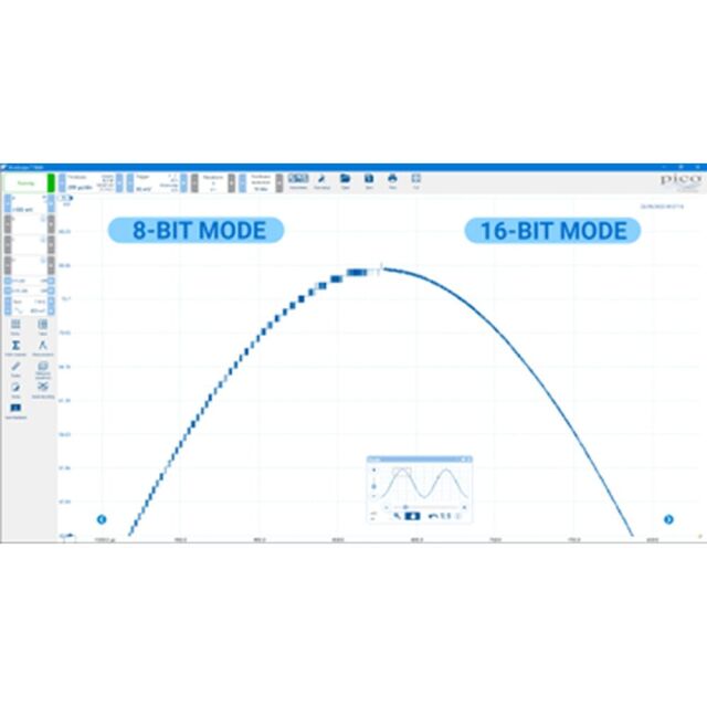 PicoScope 5000D シリーズ FlexResオシロスコープは、垂直解像度8~16ビット、最大帯域幅200 MHz、最高サンプリング速度1 GS/ sなどの機能を搭載しています。各測定の要件に最も適したハードウェア解像度を選択できます。