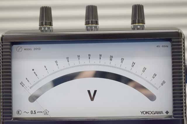 携帯用交流電圧計、階級:JIS C 1102 0.5級相当、使用姿勢:水平、電圧レンジ:15/30V