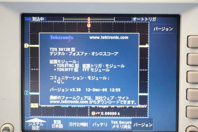 周波数帯域:DC~100MHz、入力チャンネル:2CH、最高サンプルレート(全CH):1.25GS/s、感度:1mV/div~10V/div(1MΩ)、1mV/div~1V/div(50Ω)、レコード長:10k/ch、時間軸レンジ:4ns/div~10s/div、画面:6.4インチTFTカラー(640×480ピクセル)、インタフェース:イーサネット・ポート、パラレル・プリンタ・ポート、その他:フロッピー・ディスク