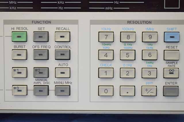 マイクロ波フリケンシカウンタ、INPUT1 周波数範囲:10Hz~200MHz、最大入力レベル:10Vrmss/1MΩ、2Vrms/50Ω、コネクタ:BNC、 INPUT2 周波数範囲:0.2~18GHz、最大入力レベル:+10dBm、入力インピーダンス:50Ω、コネクタ:N型、表示:12桁