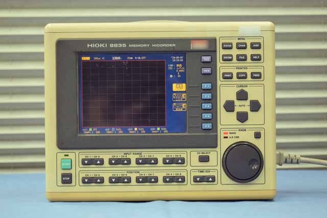 測定機能:メモリレコーダ/レコーダ/実効値レコーダ、入力方式:プラグイン入力方式(8936アナログユニット2本実装)、最大チャネル数:アナログ8ch+ロジック16ch、メモリ容量:12ビット×4ワード/ch(1ch使用時)~12ビット×500kワード/ch(8ch使用時)、ファイル操作:FDD×1/PCカードTypeIIIスロット×1 ファイル形式(BMP、バイナリ、テキスト)、プリンタ、表示部:6.4型TFTカラー