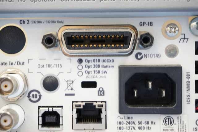 周波数レンジ:350MHz(1ch/2ch)、桁数:12、シングルショット時間分解能:100ps、測定機能:周波数、周波数比、周期、タイムインターバル、立上がり/立下り時間、デュティ比、位相、積算、ピーク電圧、 解析機能:演算(アベレージ・スケール・変化デルタ)、統計(平均、最小、最大、標準偏差、アラン分散)、ヒストグラム、ストリップ・チャート、リミット・テスト、 標準タイムベース:0.2ppm/月、 周波数測定速度:1,000回/秒、 インタフェース:LAN、USB、GPIB、 画面:4.3インチカラーディスプレイ、Opt.010:超高安定OCXOタイムベース