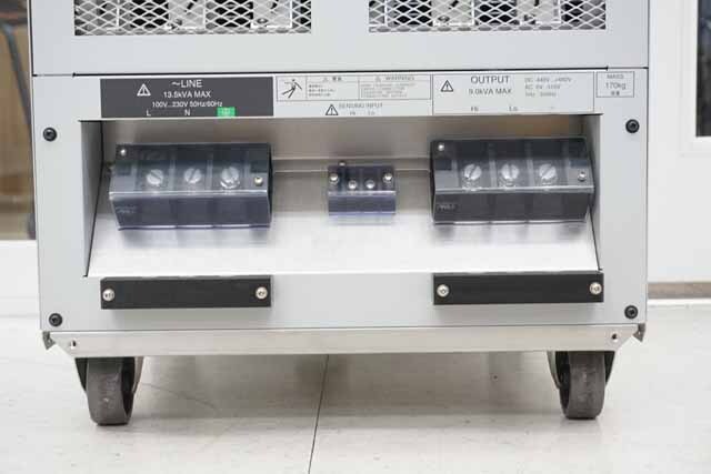 TypeR 回生・逆潮流対応モデル 【AC/DCモード、信号源】AC/DCモード:AC・ACDC・DC、信号源:INT・VCA・SYNC・EXT・ADD、【交流出力】電力容量:9kVA、相:単相2線、定格出力電圧:100V/200V、相電圧設定:0.0V~160.0V/0.0V~320.0V、最大電流:90A/45A、周波数設定範囲:40.00Hz~550.00Hz(ACモード)、【直流出力】電力容量:9kW、定格出力電圧:100V/200V、電圧設定範囲:-227.0V~+227.0V/-454.0V~+454.0V、最大ソース電流:90A/45A、【その他】計測機能あり、表示:5.7インチLCDモニタ、USB/RS-232C/GPIB/LAN、PA-001-1722/PA-001-1723/PA-001-1724/PA-001-0725